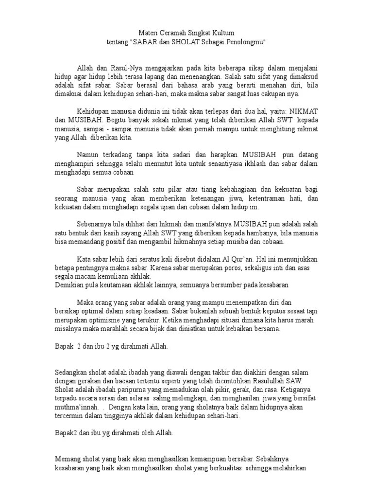 Contoh pidato singkat teks naskah pidato pendek kita semua tentunya sudah tidak asing lagi . Pidato bahasa arab tentang sabar yabg pendek serta tulisan bahasa indonesianya.